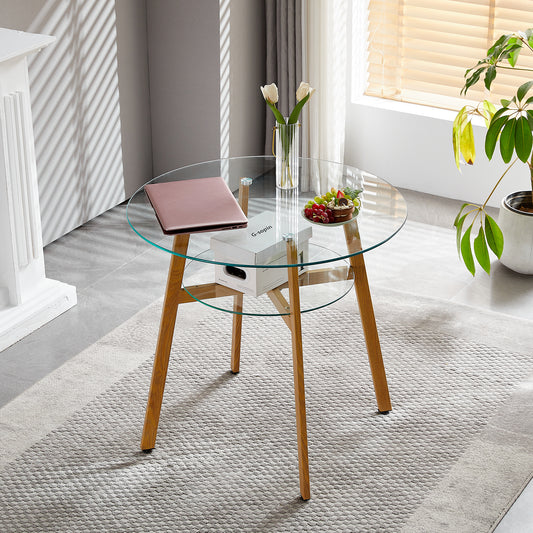 MASSA 80cm Circle Glass Dining Table With Iron Legs-Clear