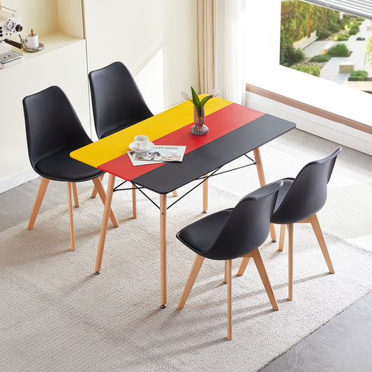 PANSY 110cm Dining Table With Beech Legs-Black Red Yellow