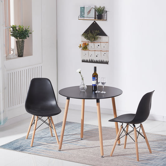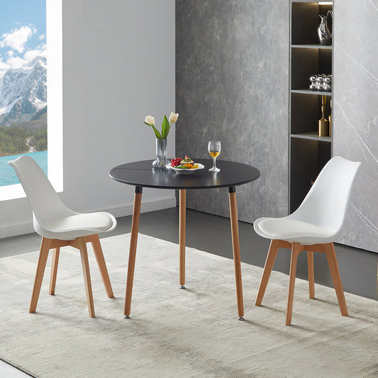 PEA 80cm Circle Dining Table With Three Beech Legs-Black