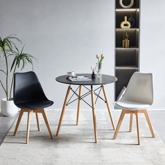 RAY 80cm Circle Dining Table With Beech Legs-Black