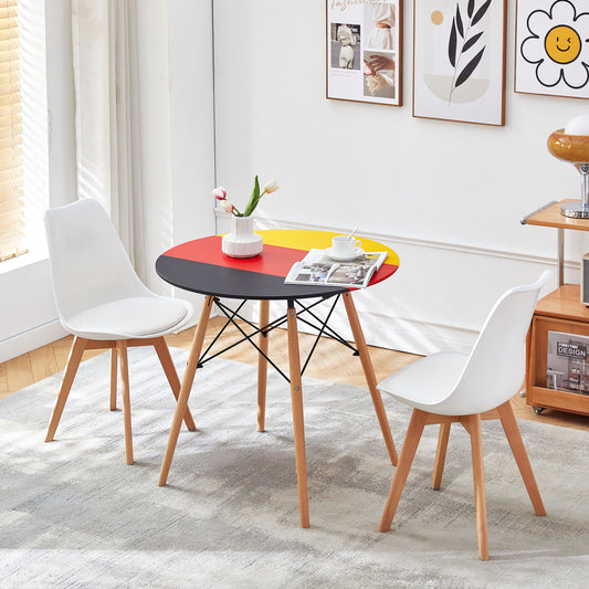 RAY 80cm Circle Splicing Dining Table With Beech Legs-Black Red Yellow