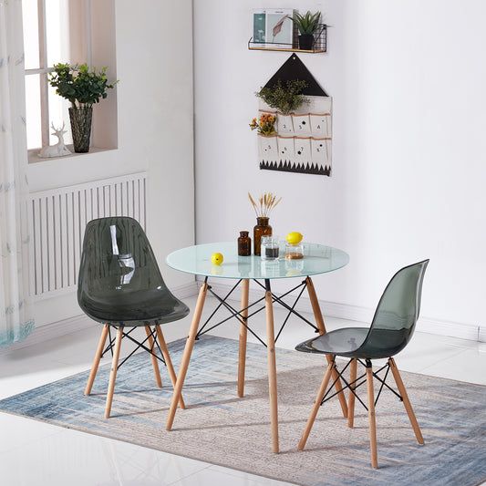 RAY 80cm Circle Glass Dining Table With Beech Legs-Clear