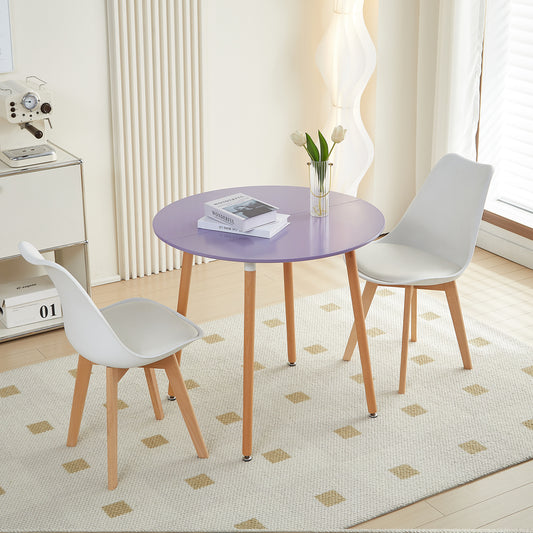 RONALD 80cm Circle Dining Table With Beech Legs - Gray Purple