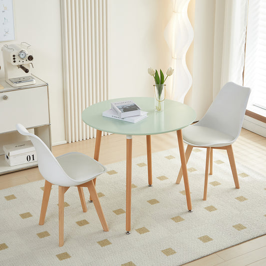 RONALD 80cm Circle Dining Table With Beech Legs - Ice Cream Green