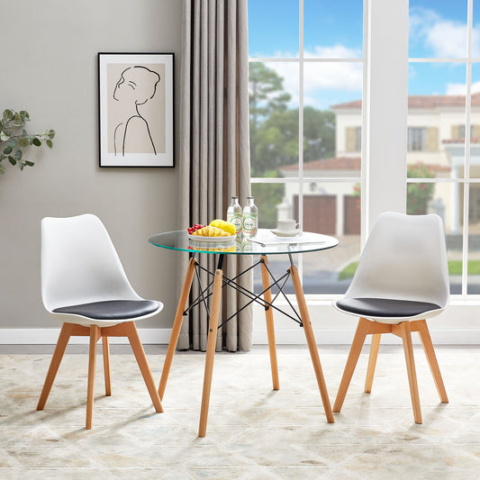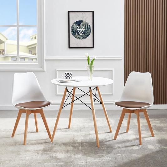 TULIP Dining Chair with Beech Legs - White/Bean Paste