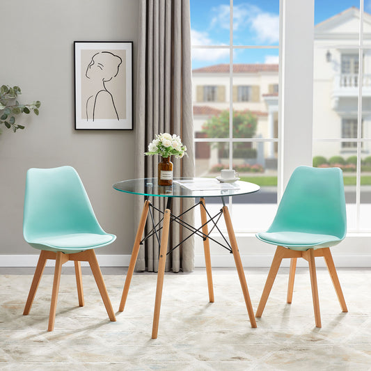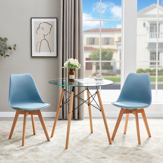 TULIP Dining Chair with Beech Legs - Light Gray Blue