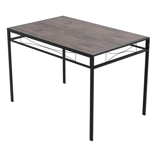 FERN 109cm Dining Table With Black Iron Legs-Dark Wood Grain