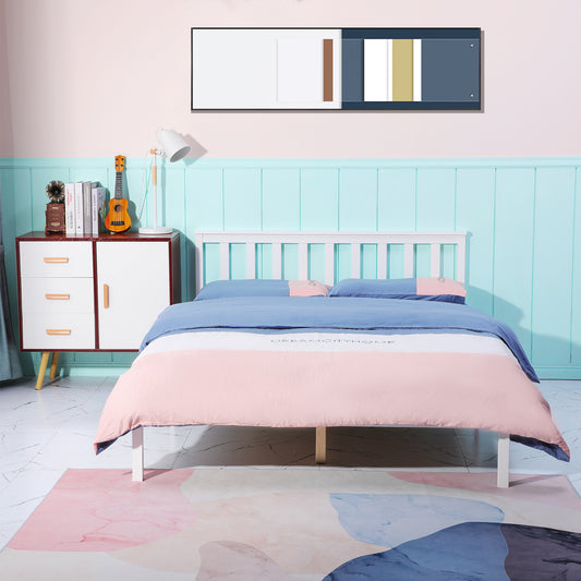 BIGLIA Double Pine Wooden Bed 146*198cm - White