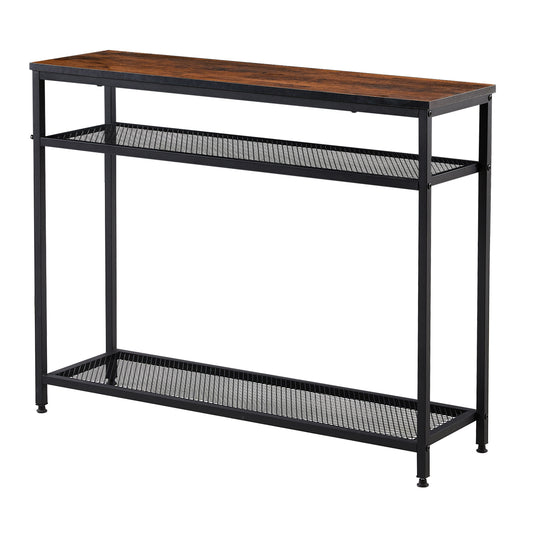 HAW 3-Tier Console Table with Storage Shelf - Rustic Brown