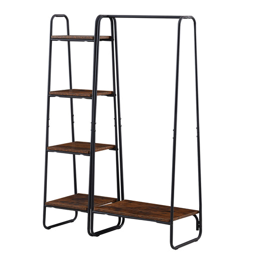 HAZEL Clothes Rail Metal with 4-Tier Shelves Wooden Shelves Garment Rack - Brown