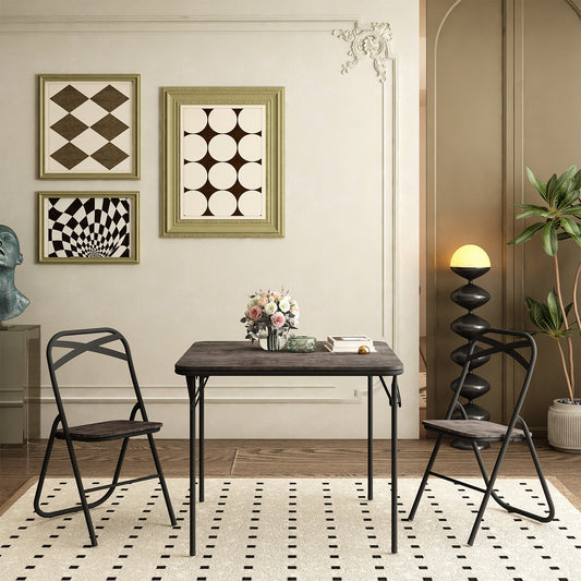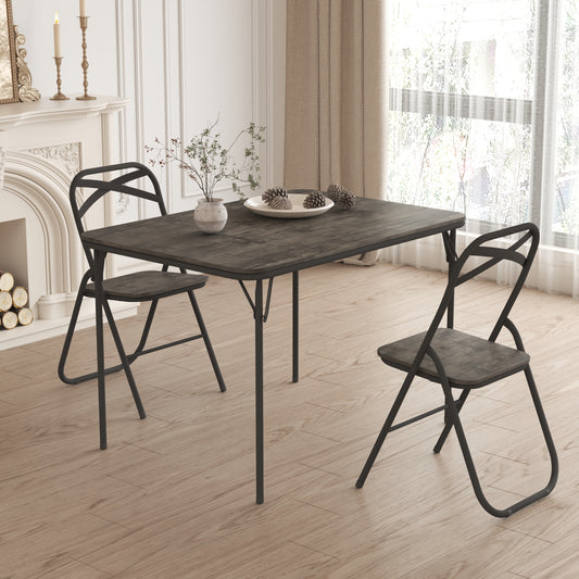 MARBURY 107cm Two Styles Dining Table With Iron Legs-Dark Wood Grain and Black Wood Grain