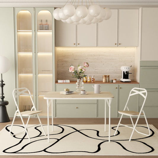 MARBURY 107cm Two Styles Dining Table With Iron Legs-Light Oak Grain and White Wood Grain