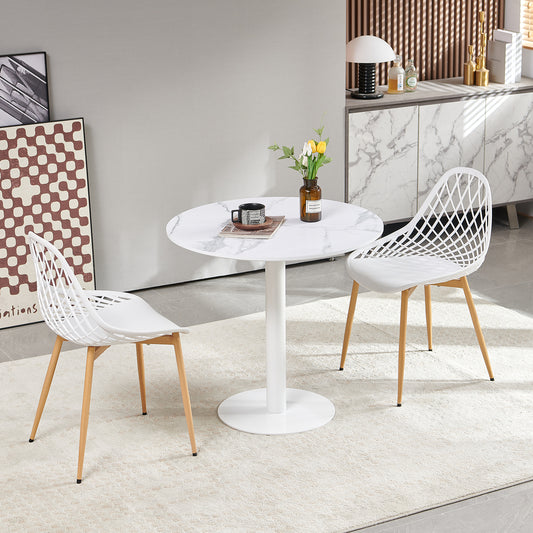 LYMAN 80cm Circle Dining Table With Iron Legs-White