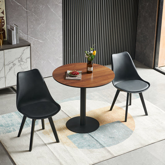 LYMAN 80cm Circle Dining Table With Iron Legs-Walnut Color