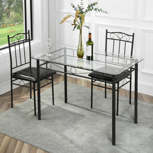 NORSEMAN 110cm Glass Dining Table With Black Iron Legs-Clear