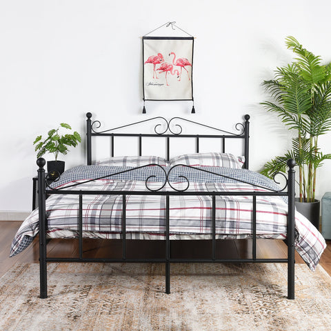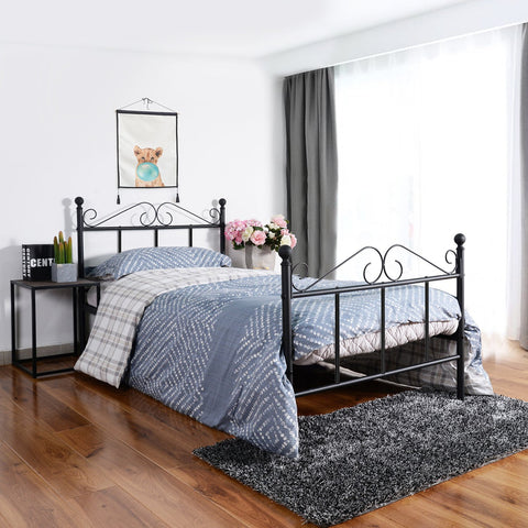 EGGREE FLOWER single bed, double bed, metal bed frame, guest bed, bedroom furniture, strong bed frame cot, adult bed, for guest bedroom, black.